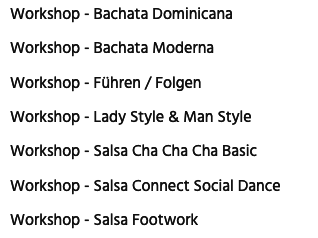 Buchung der Workshops für Teilnehmer, die nicht in der Salsa Tanzschule Bailamos Wbg. registriert sind, bitte das Kontaktformular ausfüllen und senden.